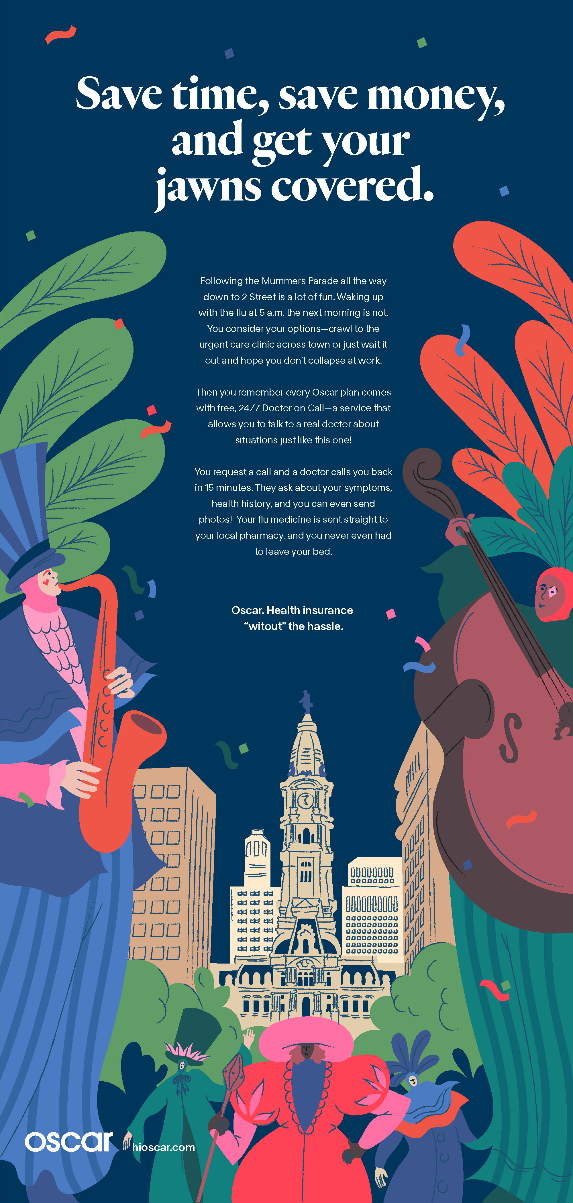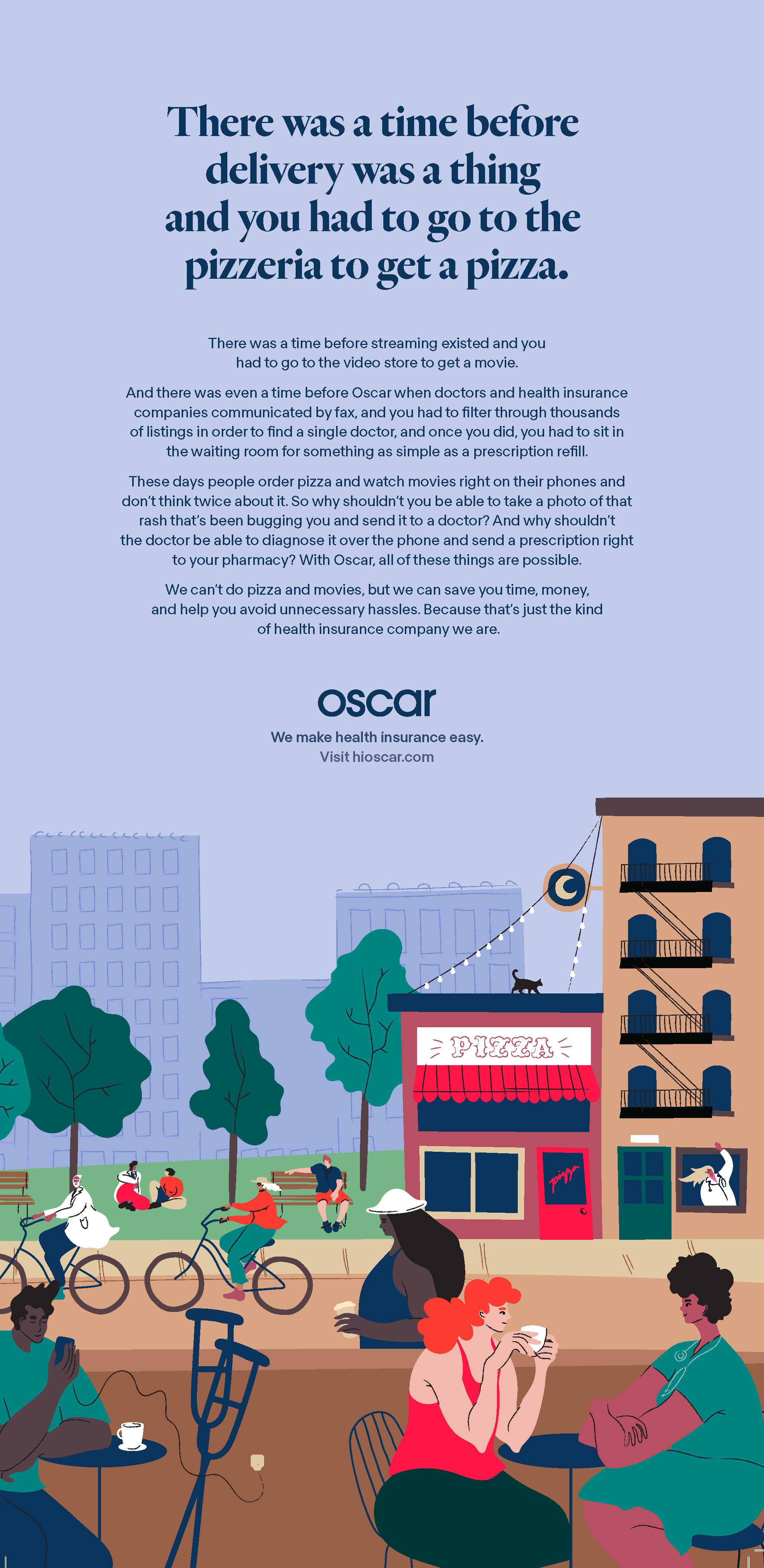 When I was at Oscar Health, I wrote copy for digital, OOH, TV, and radio for the 2019 and 2020 Open Enrollment campaigns and the launch of Medicare Advantage. I maintained Oscar’s copy guidelines and ensured brand voice stayed consistent across all channels. I worked alongside outside agencies and in-house freelancers as well as on location for popup brand activations.